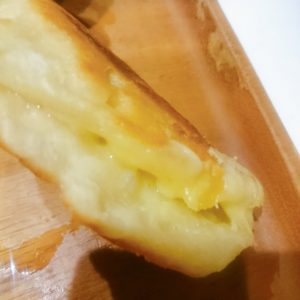 ■外はカリカリ 熱々チーズがとろける塩味が効いた揚げパン風 加減が難しいですが…