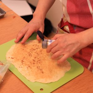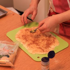 | 6 含蜜糖とシナモンパウダーを全体に振り、手で全体になじませる |
